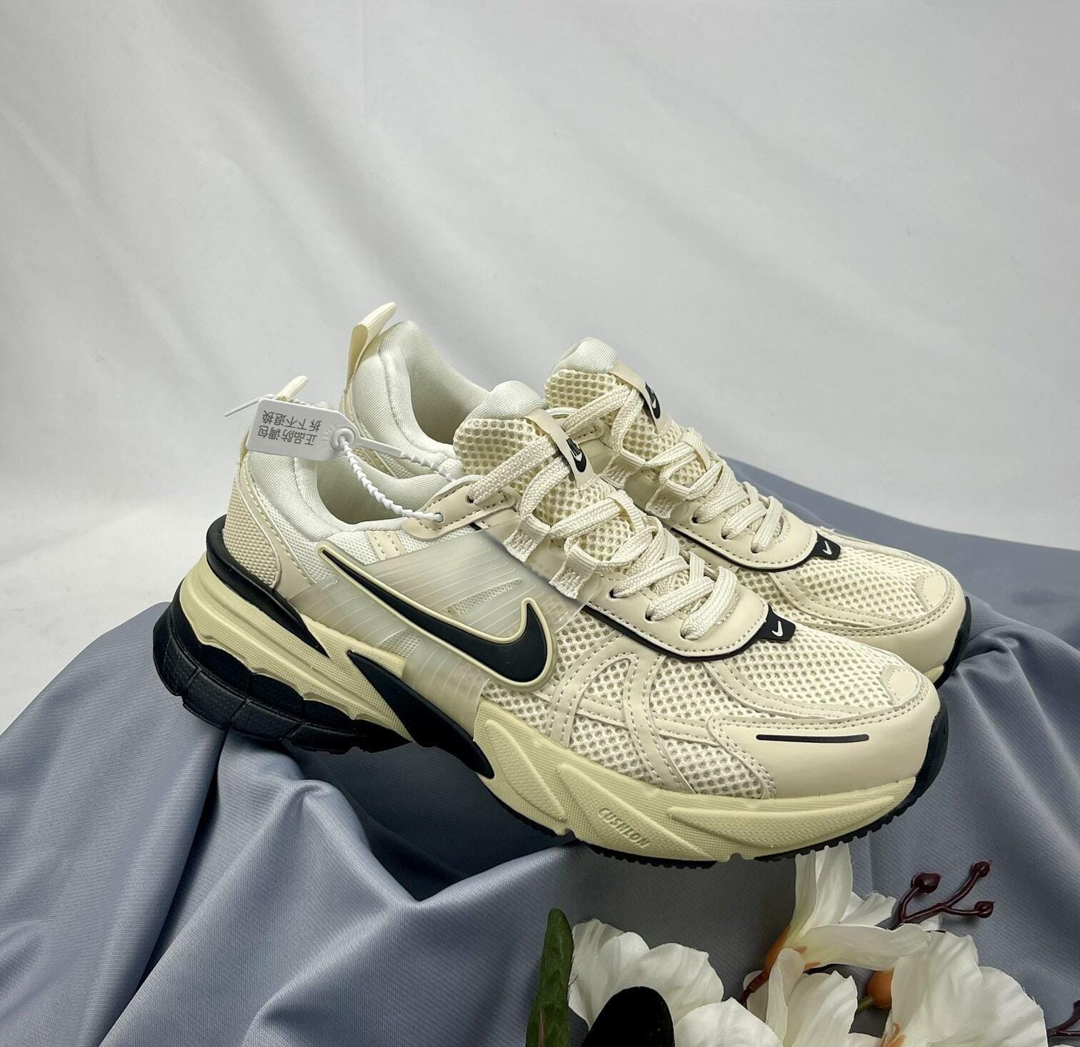 Step into modern comfort with the Nike Zoom Vomero 5 in a stylish cream and black colorway. Featuring a breathable mesh upper with leather overlays and TPU side panels, this sneaker combines performance tech with urban fashion. The dual-density midsole and Zoom Air cushioning deliver all-day support, while the bold black Swoosh adds a clean, sporty contrast. Perfect for daily wear, workouts, or lifestyle fits that stand out effortlessly.